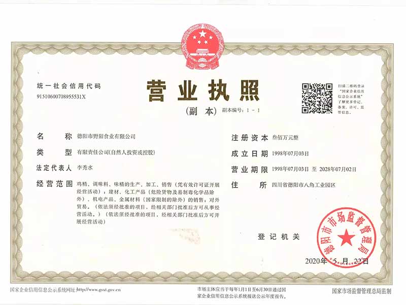 野陽食業20年來不斷發展壯大,現擁有標準化、規模化、現代化的園林式廠區,大量引進科學現代化生產設備及技術,具備先進的自動化雞精復合調味料生產線、清真食品專用生產線、川味調料底料生產線等...